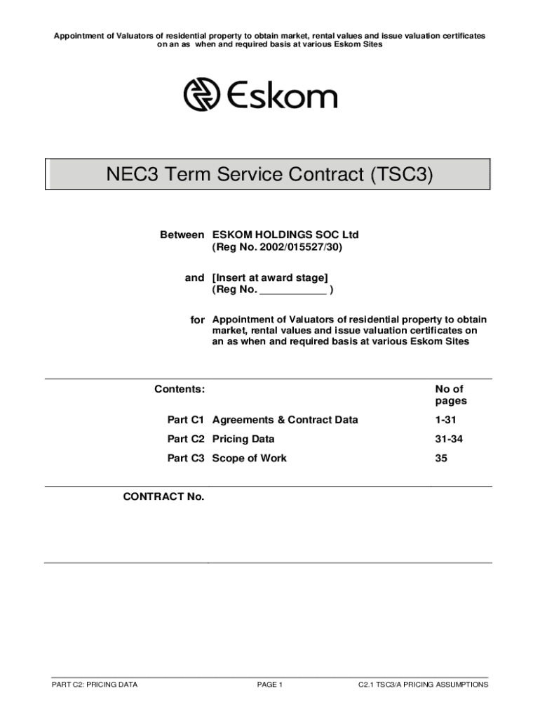 Appointment of Valuators of residential property to obtain market, rental values and issue valuation certificates on an as when and required basis at various Eskom SitesNEC3 Term Service Contract
