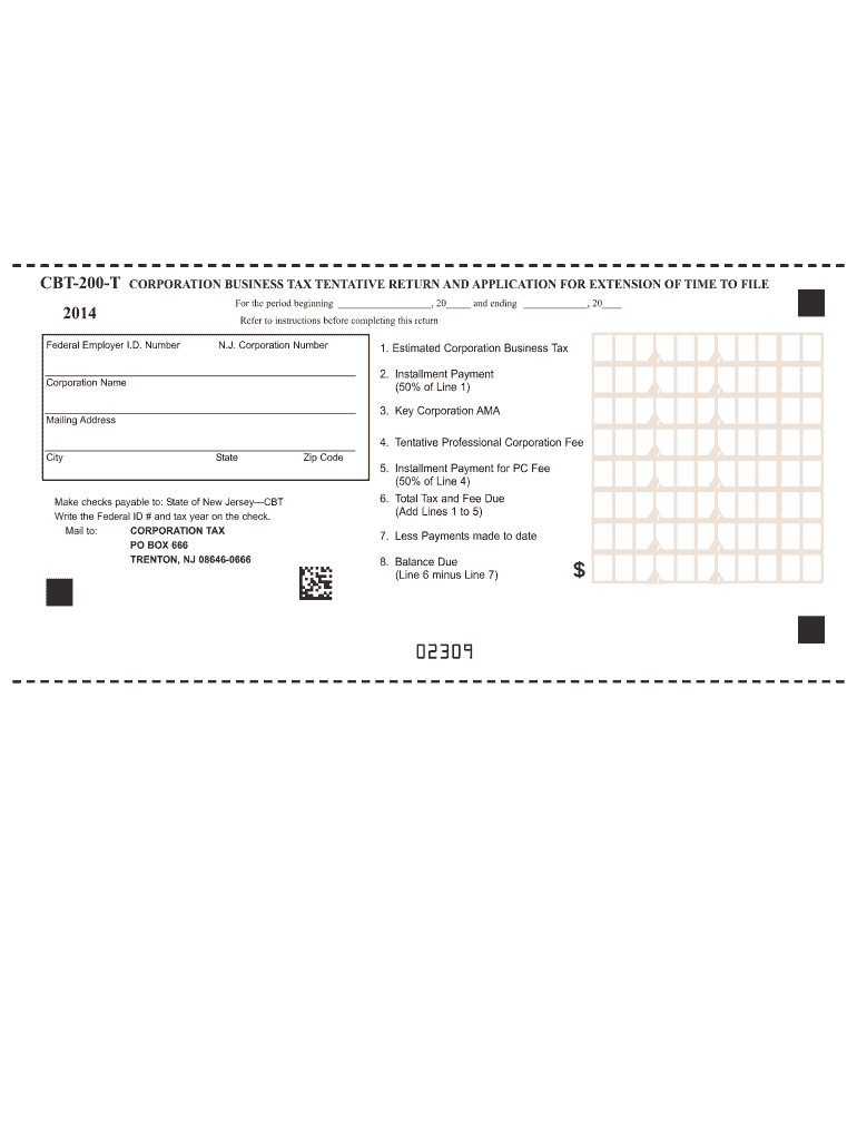 CBT 200-T CORPORATION BUSINESS TAX TENTATIVE RETURN AND APPLICATION FOR EXTENSION OF TIME To FILE. 201 For the period beginning 20 ...