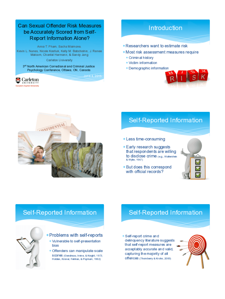 Can Sexual Offender Risk Measures be Accurately Scored from Teleport Information Alone? Anna T. Ham, Sacha Maim one, Kevin L. Tunes, Nicole Hosting, Kelly M. Babchishin, J. Renee Malcolm, Chantal