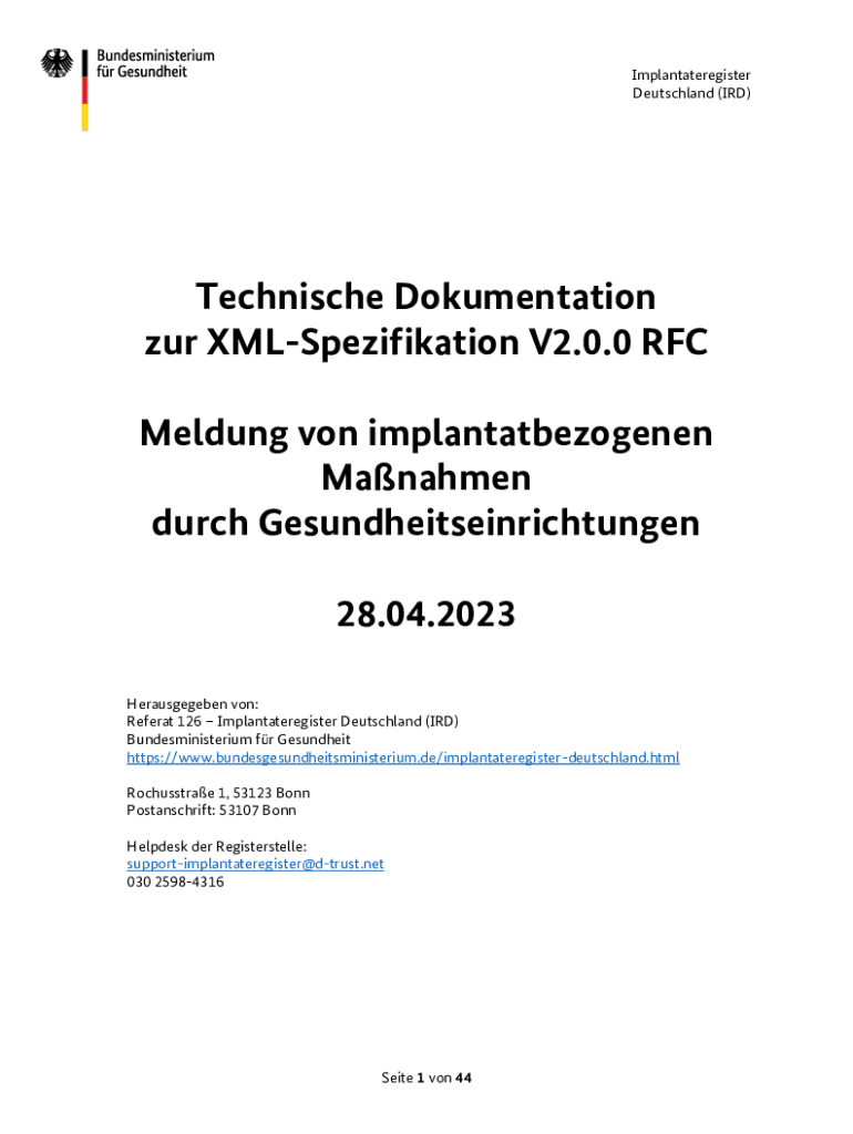 Holen Sie sich kostenlos Technische Spezifikation fr die Meldung der ...