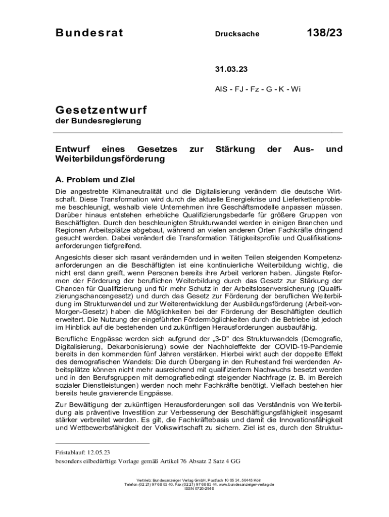 Holen Sie sich kostenlos Bundesrat Drucksache 138/23