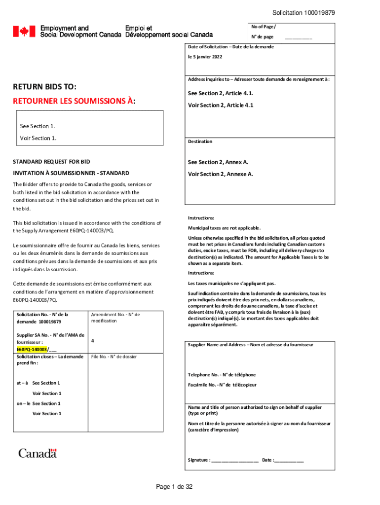 LE 5 Janvier 2022Address inquiries to Dresser route demand de enslavement :RETURN BIDS TO:See Section 2, Article