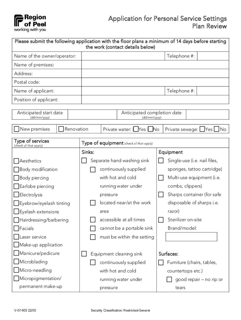 Additionally, organizations or establishments offering personal services may also need to fill out application forms for obtaining licenses or permits for their operations.