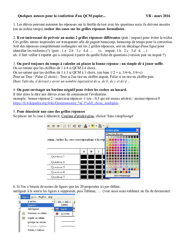 Queues assumes pour la confection d\'un QCM paper...YB mars 20161. Les lies event ensurer LES responses SUR la Seville de test Alec LES questions main ILS driven ensuite