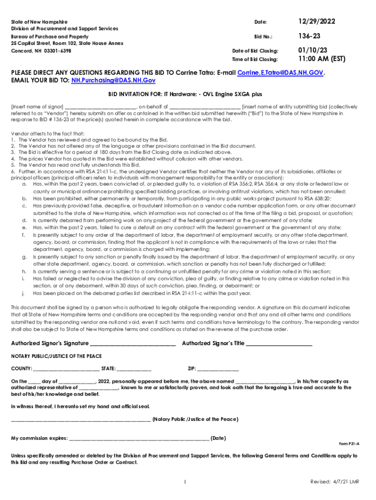 Get the free BID INVITATION FOR: IT Hardware: - OVL Engine SXGA plus