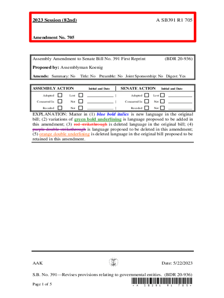 2023 Session (82nd)A SB391 R1 705Amendment No. 705Assembly Amendment to Senate Bill No. 391 First Reprint(BDR 20936)Proposed by: Assemblyman Koenig