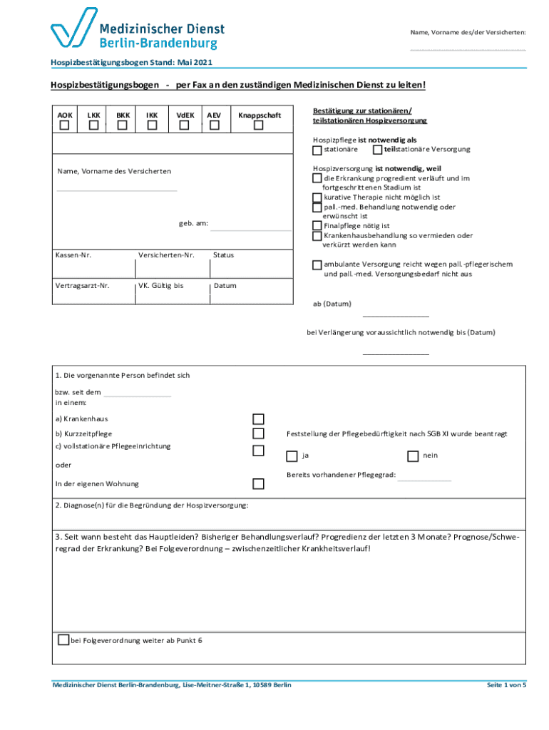 .............................................................. Hospiz settings open Stand: Mai 2021Hospiz settings open per Fax a den zustndigen Medizinischen Dies
