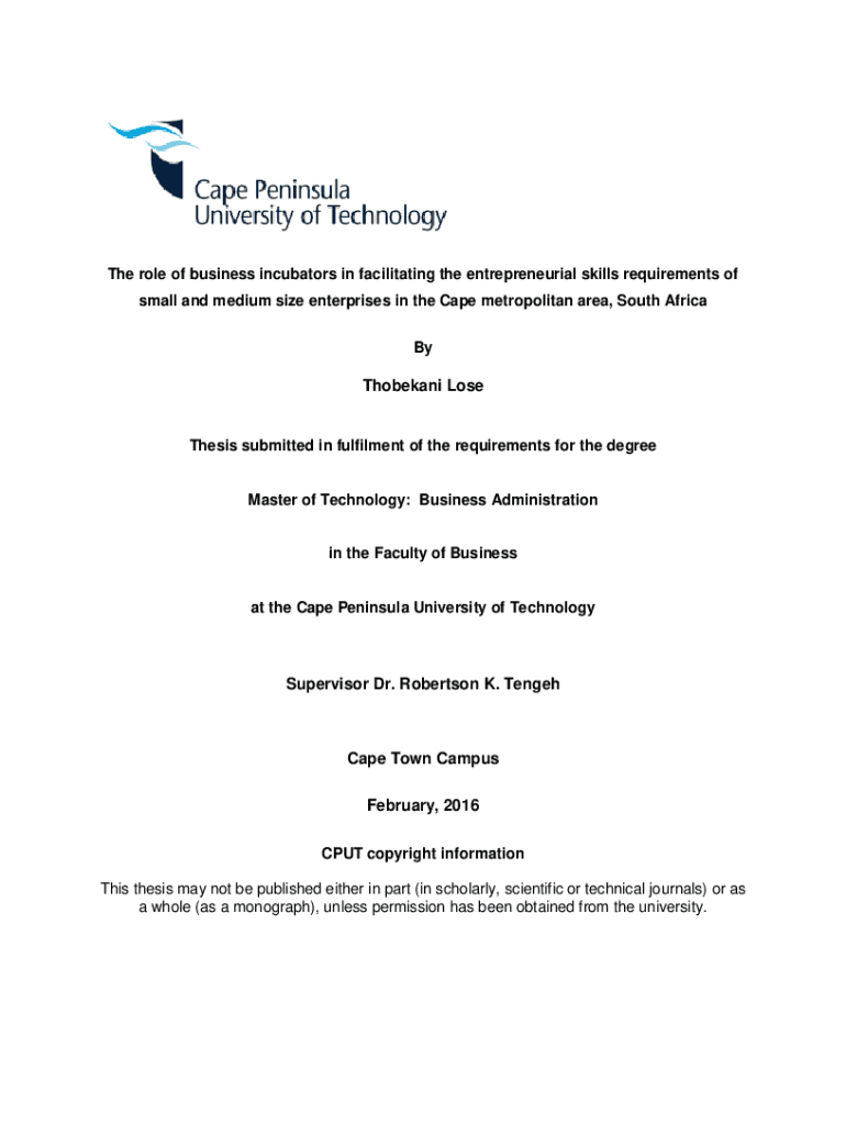 The role of business incubators in facilitating the entrepreneurial skills requirements of