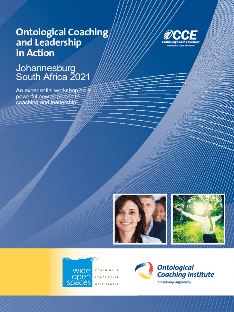 Ontological Coaching and Leadership in Action Johannesburg South Africa 2021 An experiential workshop on a powerful new approach to coaching and leadershipONTOLOGICAL COACHING AND LEADERSHIP IN ACTION