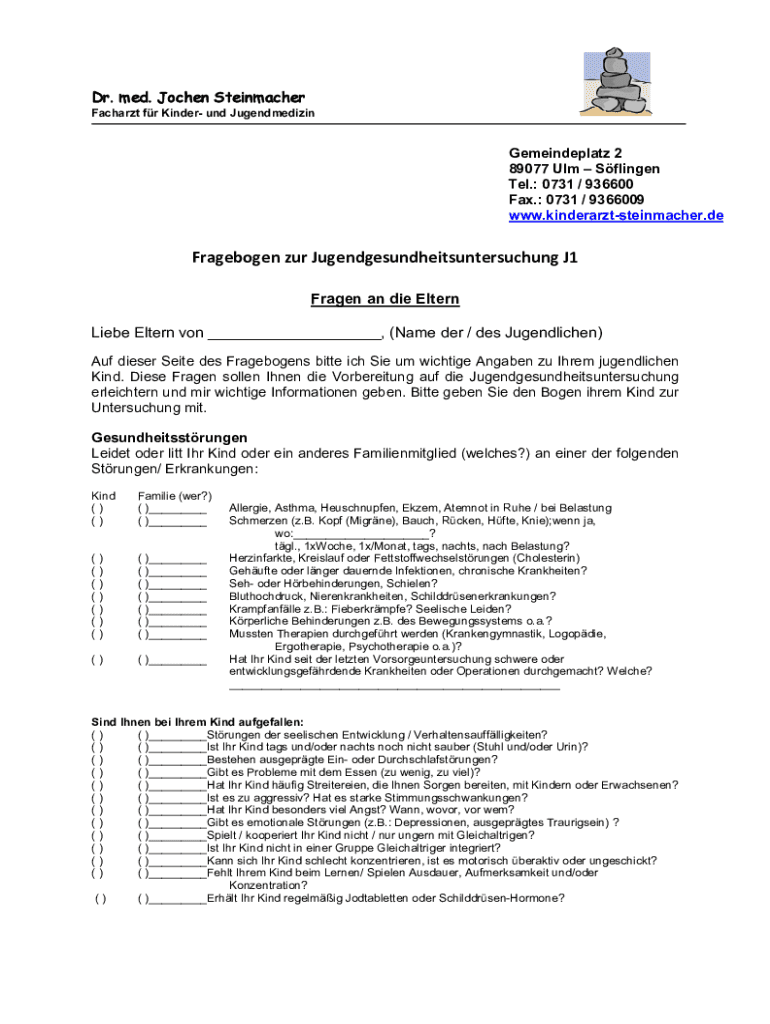 www.kinderarztsteinmacher.deFragebogen our Jugendgesundheitsuntersuchung