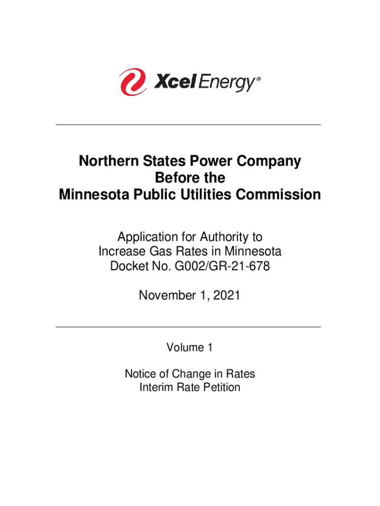 ___Northern States Power Company Before the Minnesota Public Utilities Commission Application for Authority to Increase Gas Rates in Minnesota Docket No. G002/GR21678 November 1, 2021 ___Volume 1