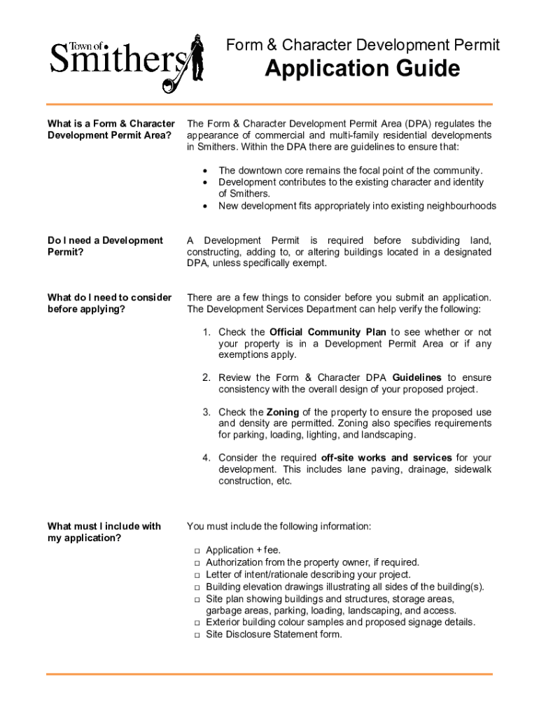 Get the free Form & Character Development Permit - Application Guide
