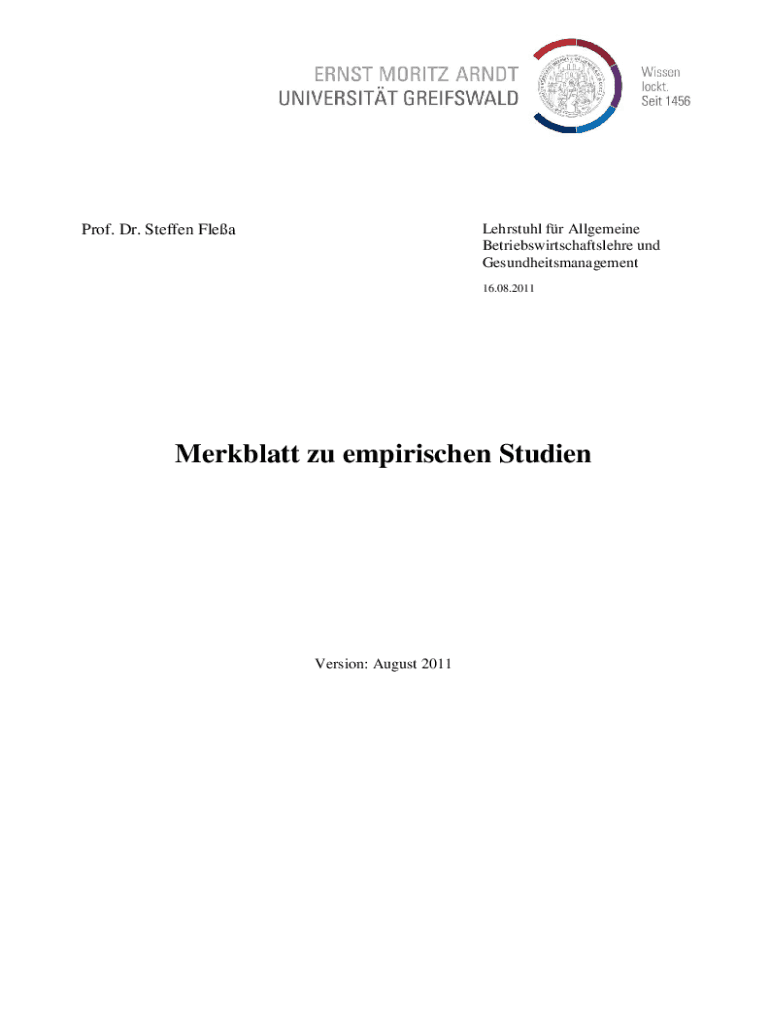 GesundheitsmanagementProf. Dr. Steffen Flea16.08.2011Merkblatt EU empirischen StudienVersion: August 2011Inhaltsverzeichnis1 Formulating UND Przisierung