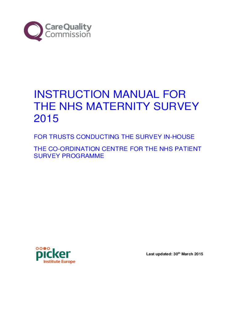 INSTRUCTION MANUAL FOR THE NHS MATERNITY SURVEY 2015 FOR TRUSTS CONDUCTING THE SURVEY HOUSE THE COORDINATION Center FOR THE NHS PATIENT SURVEY Programmers updated: 30th March 2015Contacts The Coordination
