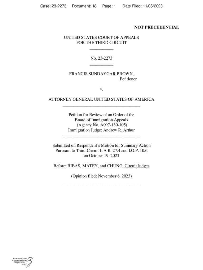 Get the free No. 23-2273FRANCIS SUNDAYGAR BROW
