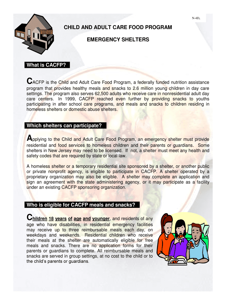 EMERGENCY SHELTERSWhat is CA CFP?CA CFP is the Child and Adult Care Food Program, a federally funded nutrition assistance