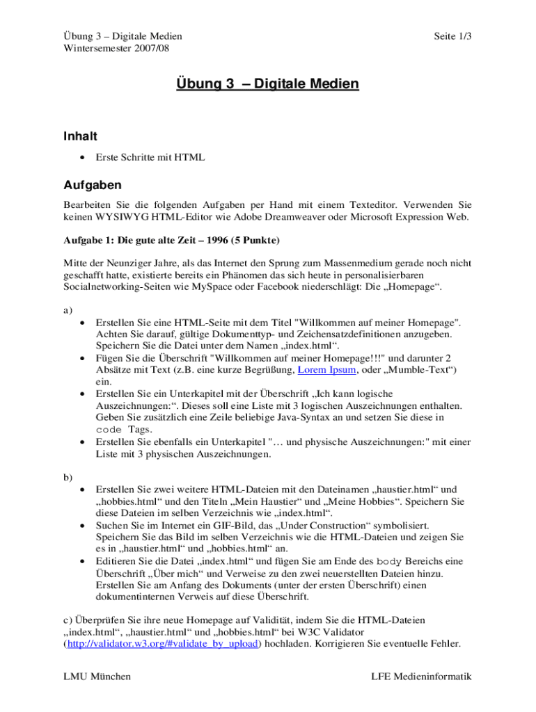 Winter semester 2007/08Seite 1/3bung 3 Digital MedienInhalt