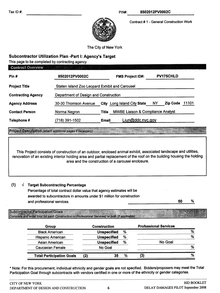 Tax LD #: 8502012PV0002G Work Construction Contract#1 General City off New York Subcontractor Utilization Plan -Part l: Agency's Target This Pareto be completed by Pin# 8502012PV0002C FMS Project