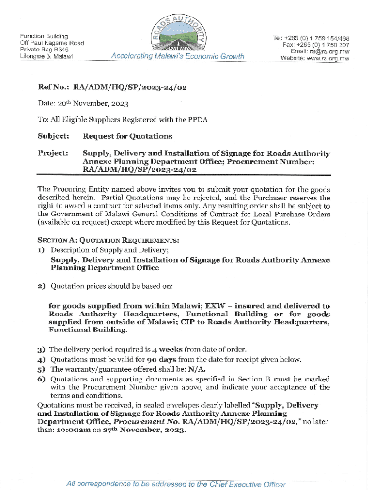 Your quotation is to be returned on this Form by completing and returning Sections B and C including any other information/certification required within this RFQ. SECTION B: QUOTATION SUBMISSION SHEET