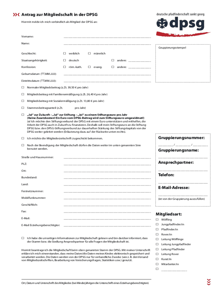 Holen Sie sich kostenlos Antrag auf Mitgliedschaft in der DPSG