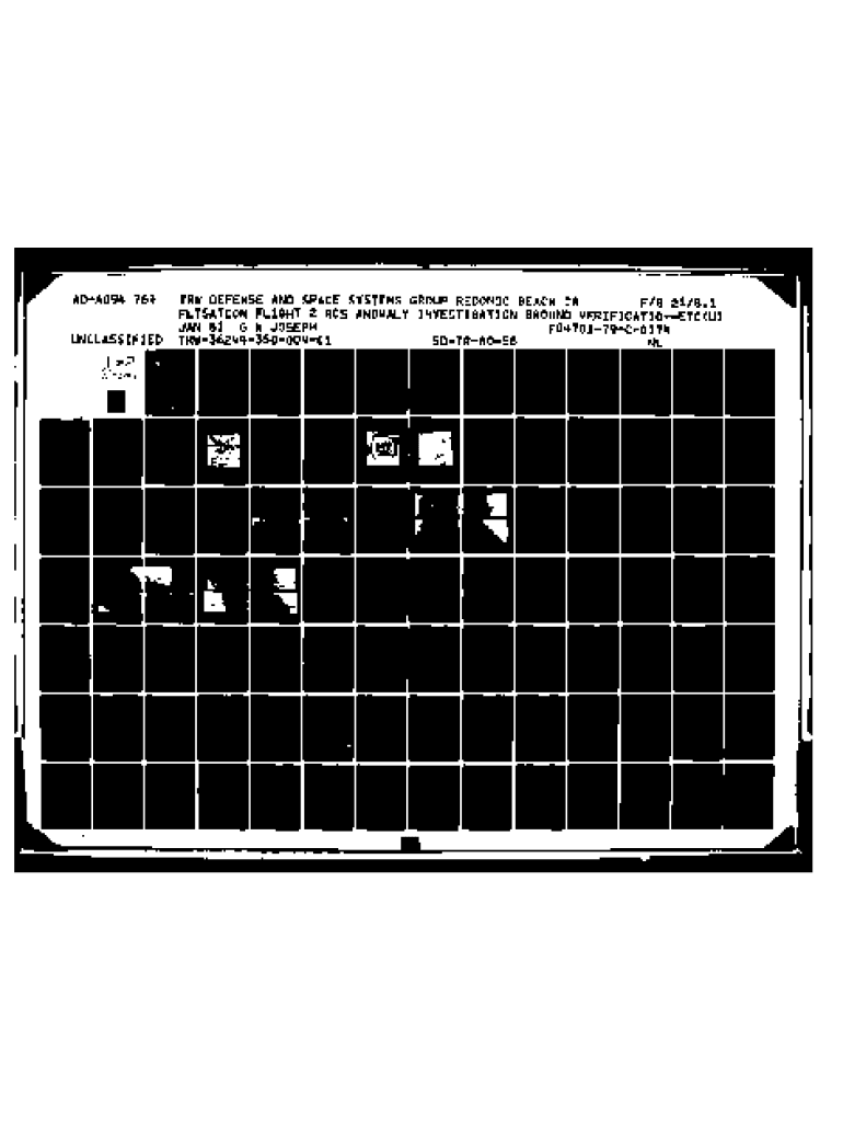 ADA094 764UNCLASSIFIED7TRW DEFENSE AND SPACE SYSTEMS GROUP REDONDO BEACH CA FLTSATCOM FLIGHT 2 RCS ANOMALY I71/. INVESTIGATION GROUND VERIFICATIO JAN 81 G W JOSEPH FO7OS79C017 ETC(U) TRW3624435000401