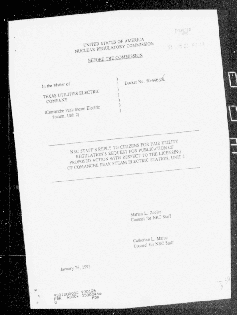 _ _ _ ___ __. IlParif a \”+C UNITED STATES OF AMERICA T3.\'\”!25 \” * :13NUCLEAR REGULATORY COMMISSION\'DEEQEEIBFZQMbilSE108))In the Matter Texas UTILITIES COMPANYDocket No. 50 446k)) ELECTRIC))(Comanche