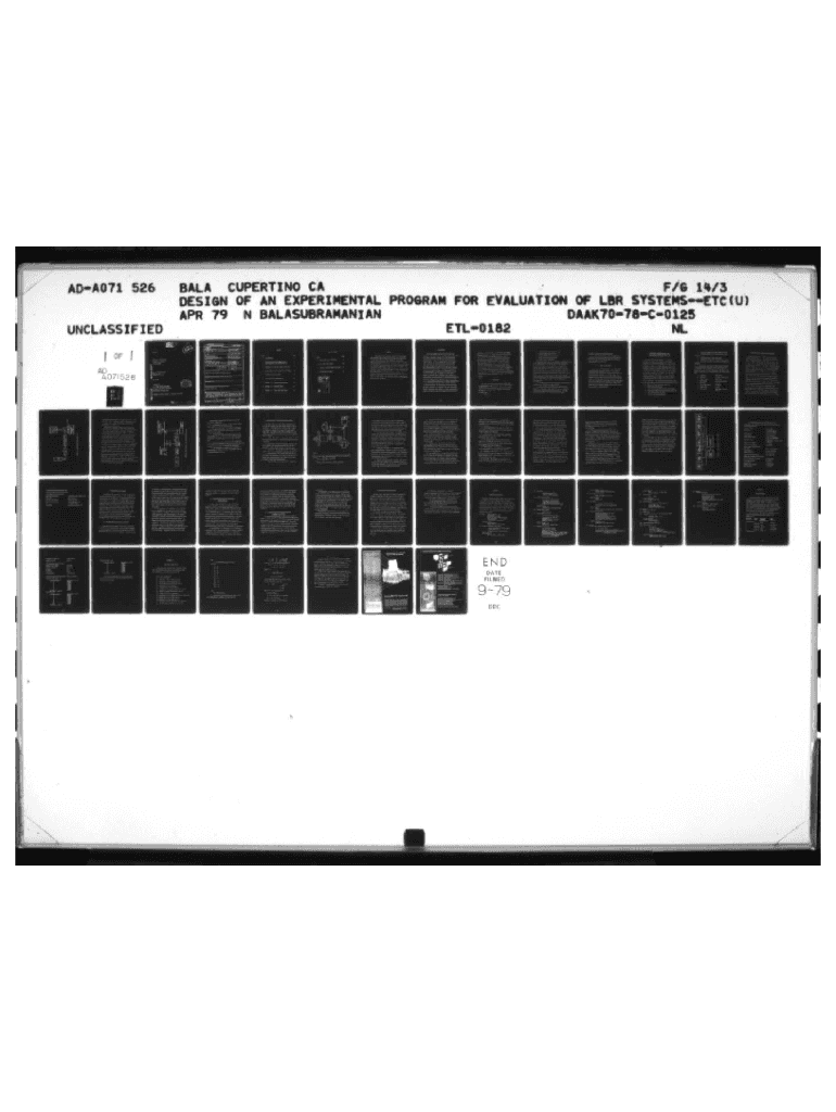 ADAM 7S 526 UNC CLASSIFIED/s fl/3 BA* A CUPERTINO CA DESIGN OF AN EXPERIMENTAL Program FOR EVALUATION OP LIP Systems (U) APR 79 N BALASUBRAMANIAN OAAX7O7SCO135 ETL O l&2 it n ___ D L3 _ rI1111111111III8_