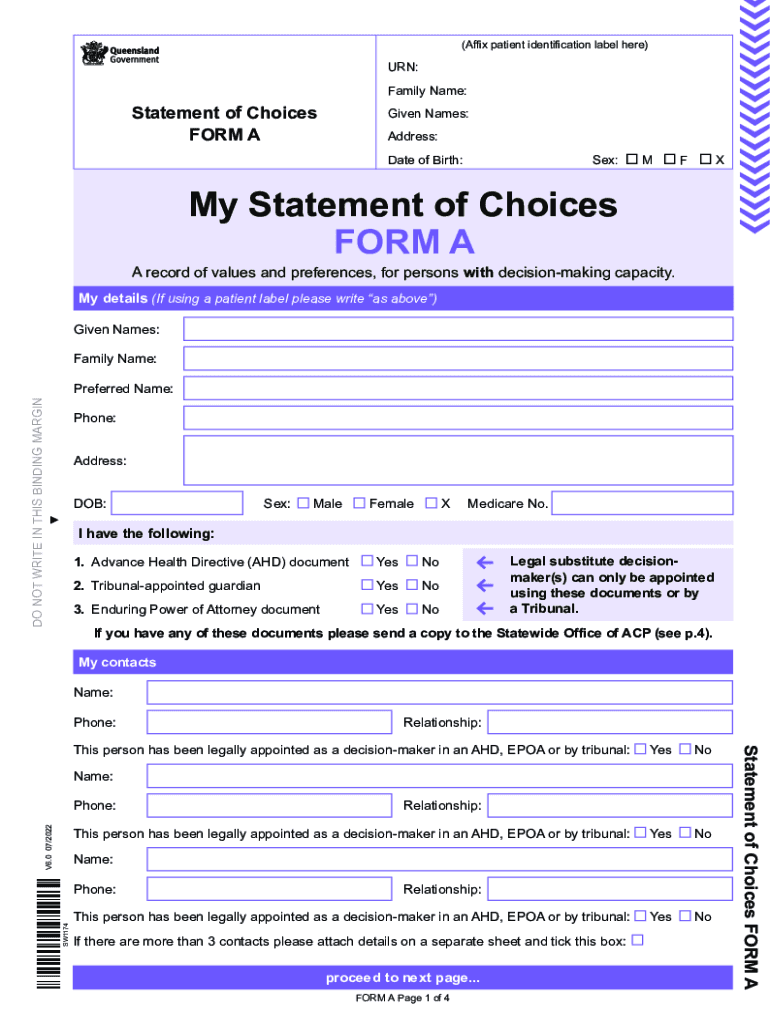 Get the free Statement of Choices (Combined Forms A and B) for Aboriginal and Torres Strait Islan...