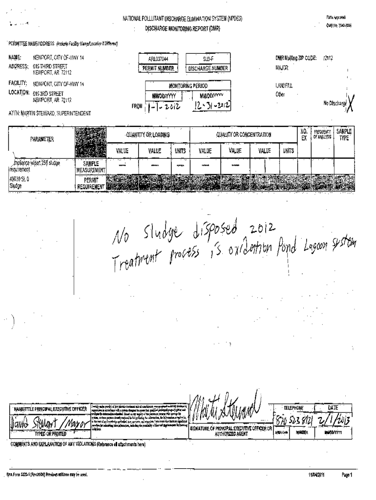 Form ApprovedNATIONAL POLLUTANT DISCHARGE ELIMINATION SYSTEM (NODES).\'I)OMB No.DISC:LARGE MONITORING REPORT (DMR)