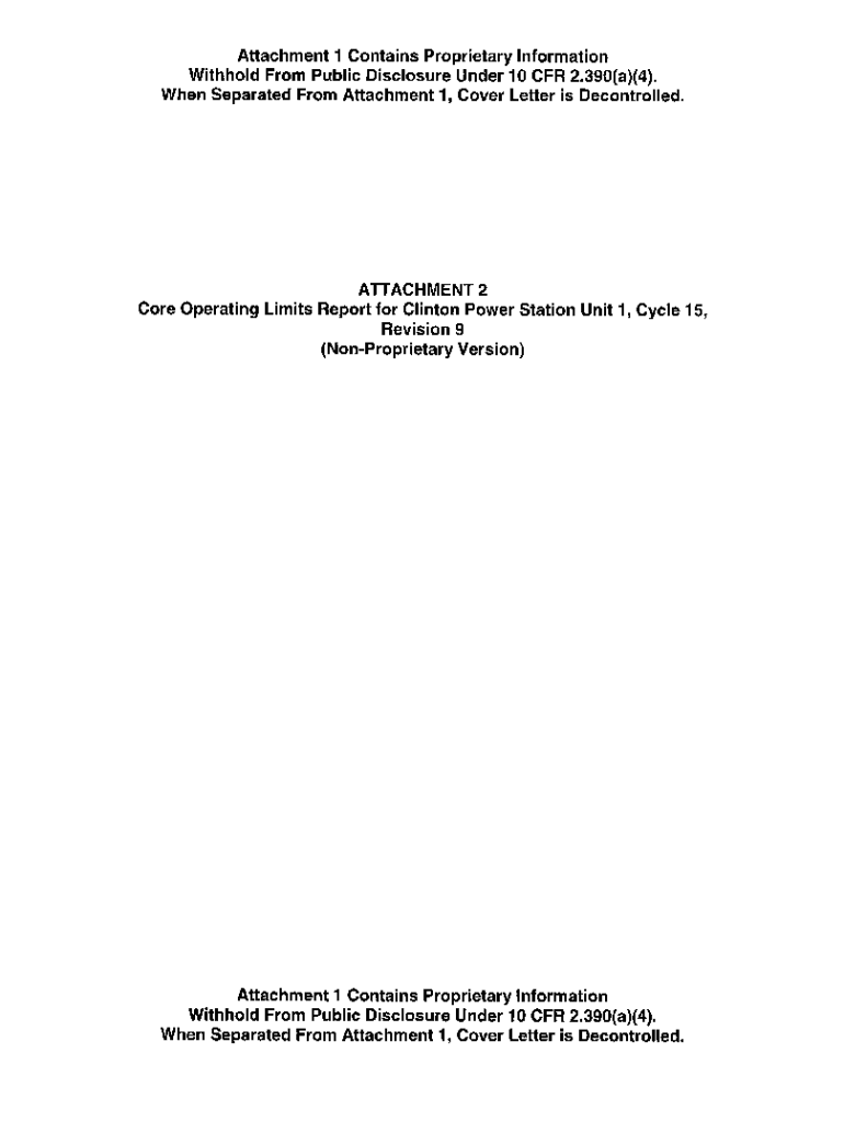 Attachment 1 Contains Proprietary Information Withhold From Public Disclosure Under 10 CFR 2.390(a)(4). When Separated From Attachment 1, Cover Letter is Decontrolled. ATTACHMENT 2 Core Operating