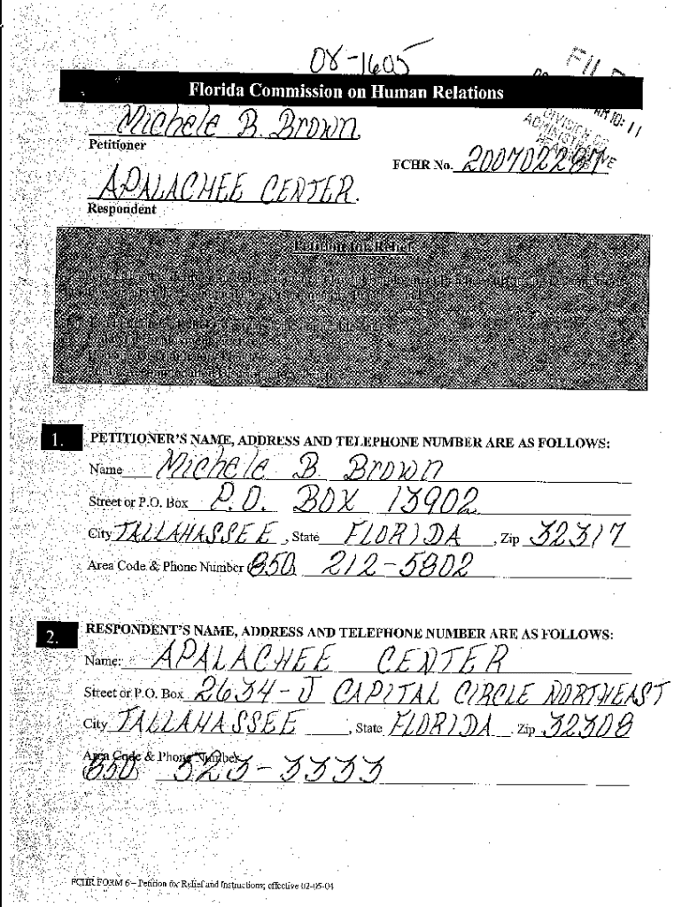 Ot\'r.4. .4TAFlorida Commission on Human RelationsMiPkpIfi % Petitio*AUQAmm.nerr \'lfyfc&iy* */ \' / /, \' /A.fFCHR NoRespondentLillZ.i//f\'*JL *LJPt;dtn JBMWMMUnllvfulfor Relief from an Employment