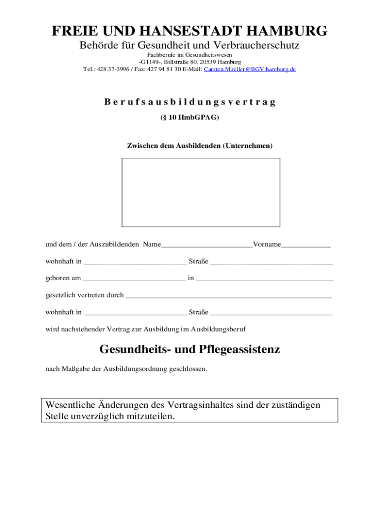 Tel.: 428.373996 / Fax: 427 94 81 30 Email: Carsten.Mueller@BGV.hamburg.deBerufsausbildungsvertrag