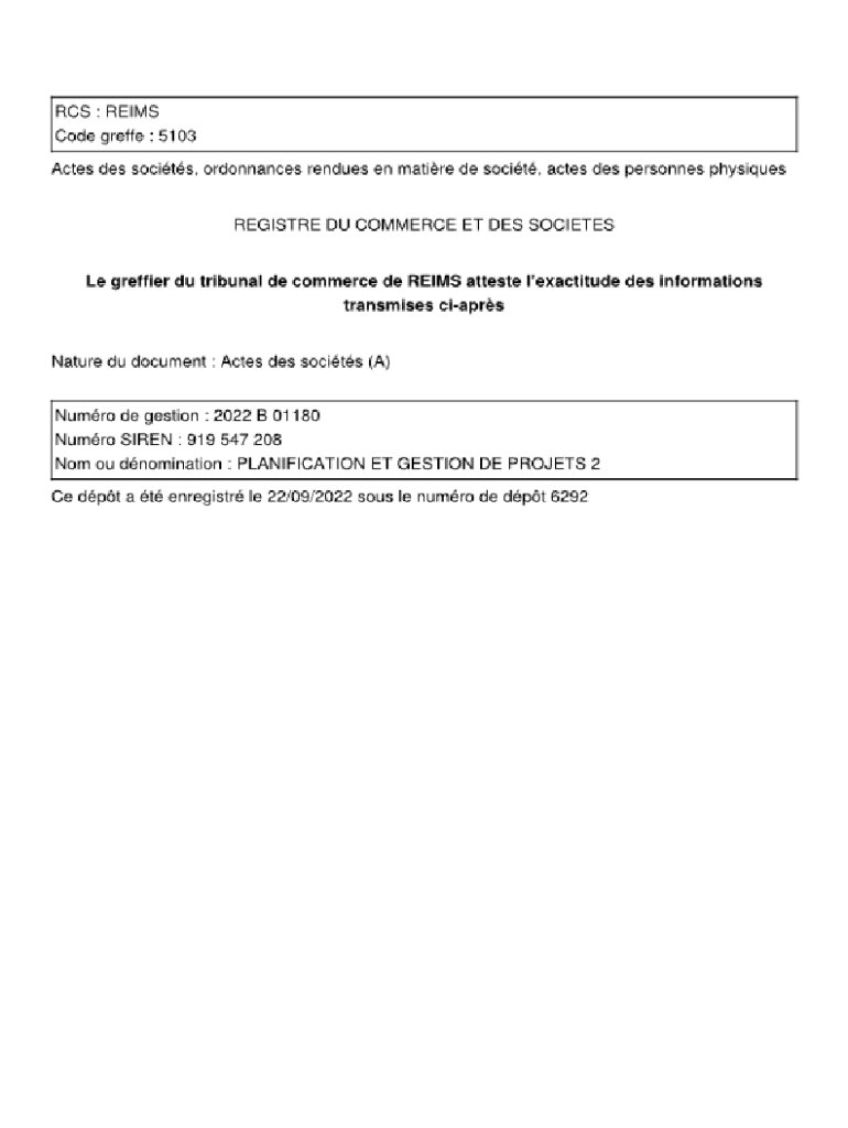 21 B BLD de la Paix21 B Boulevard de la PaixDocuSign Envelope ID: 3BB219BADCEE40A4A7D8FF432A71CA9DPLANIFICATION ET SECTION DE PROJECTS 2 SOCIETY PAR ACTIONS SIMPLIFIED AU CAPITAL DE 141.978 EUROS