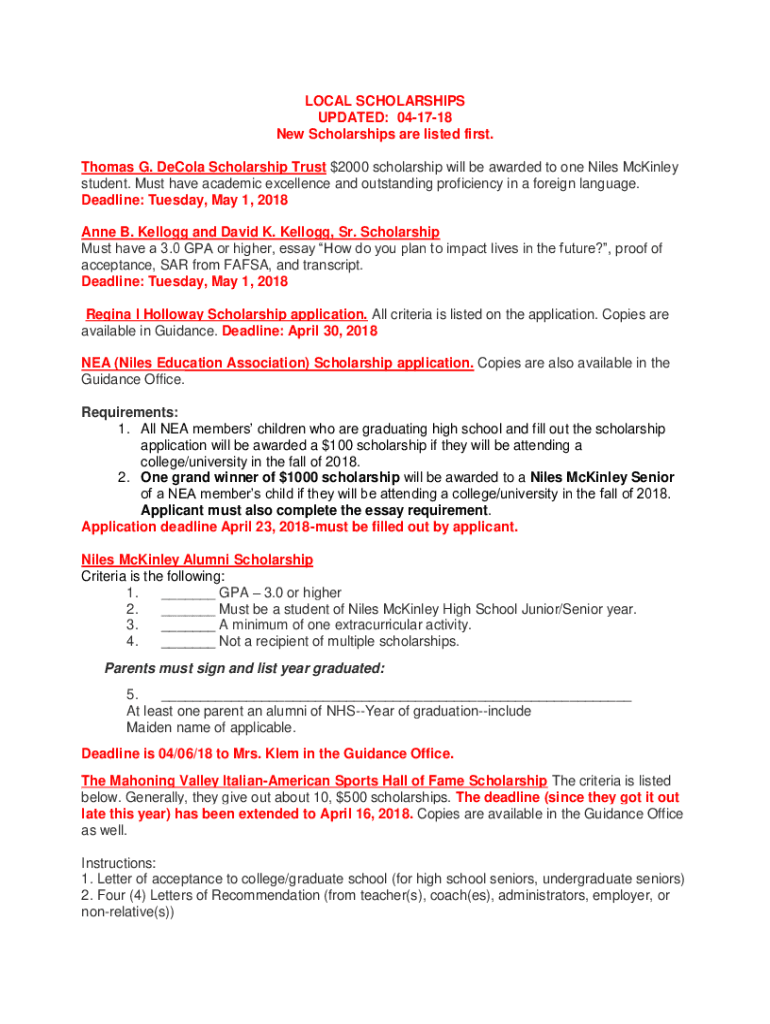 Get the free LOCAL SCHOLARSHIPS UPDATED: 04-17-18 New ...
