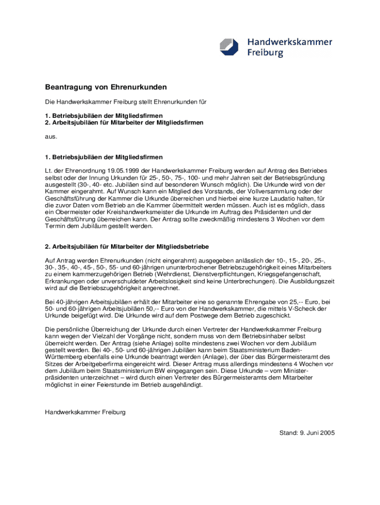The beantragung von ehrenurkundendoc is needed by individuals who want to apply for an honorary certificate or document. This document is often obtained for recognition of exceptional achievements, contributions, or services in a particular field or organization. The specific eligibility criteria and requirements may vary depending on the issuing authority, so it is advisable to refer to their guidelines or regulations to determine who qualifies for the beantragung von ehrenurkundendoc.