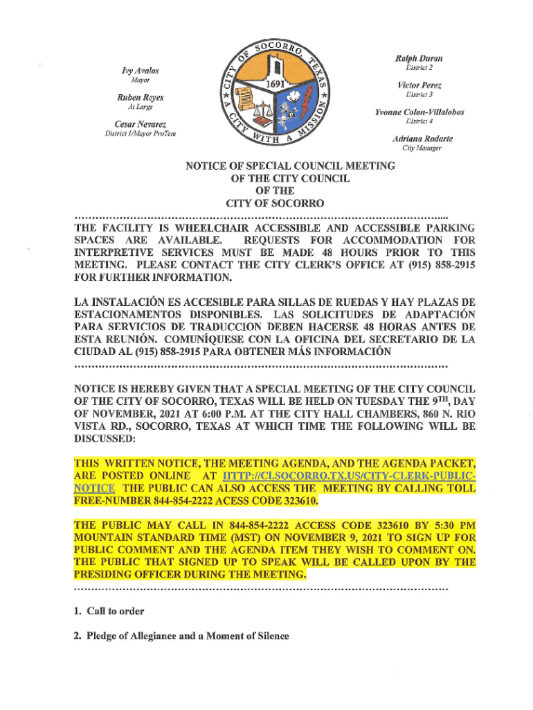 ITEM 6ITEM 7 Ralph Duran District 2Ivy Ávalos Mayor Victor Perez District 3Ruben Reyes AtLargeYvonne ColonVillalobos District 4Cesar NevarezDistrict 1/Mayor ProTemAdriana Rotate City ManagerRESOLUTION