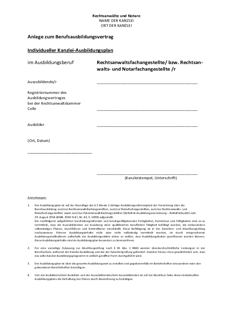 ORT HER KANZLEIAnlage sum Berufsausbildungsvertrag