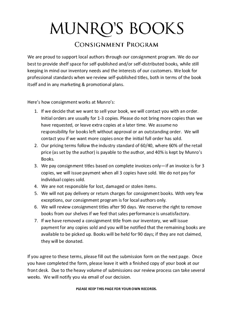 Get the free Services Consignment Program For Self Published Local ...
