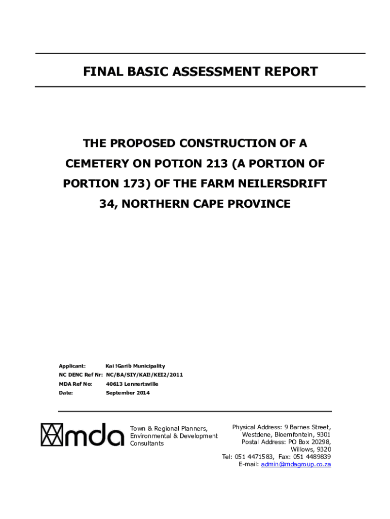 FINAL BASIC ASSESSMENT REPORTAGE PROPOSED CONSTRUCTION OF A
