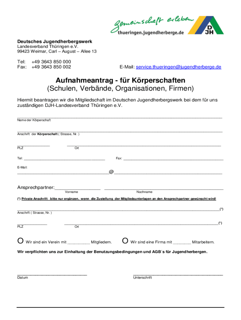 +49 3643 850 002EMail: service.thueringen@jugendherberge.deAufnahmeantrag for Krperschaften