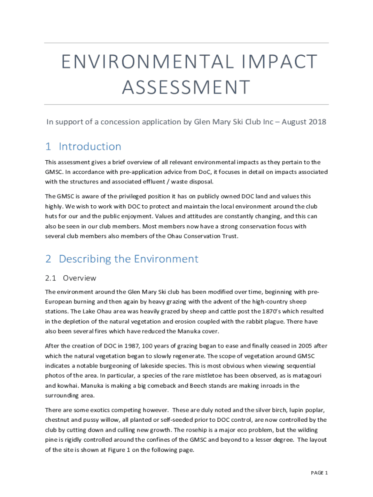 ENVIRONMENTALIMPACT ASSESSMENT InsupportofaconcessionapplicationbyGlenMarySkiClubIncAugust20181 Introduction Thisassessmentgivesabriefoverviewofallrelevantenvironmentalimpactsastheypertaintothe MSC.