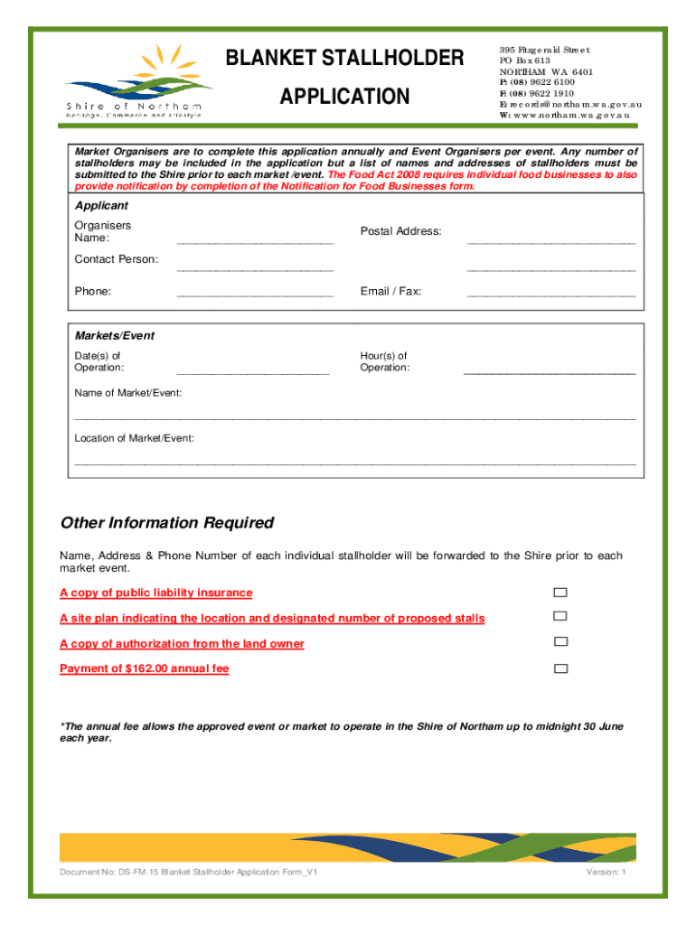 Blanket Stallholder Application is not the form you're looking for?Search for another form here.