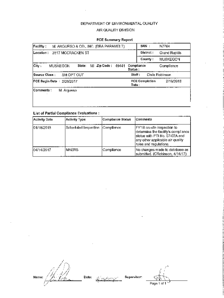 DEPARTMENT OF ENVIRONMENTAL QUALITY AIR QUALITY DIVISION FCE Summary Report Facility’M. ARGUES & CO., INC. (CBA CARAMEL)SON :N7764Location:2817 McCracken District:Grand RapidsCounty:MUSKEGONCity:MUSKEGONState:Ml