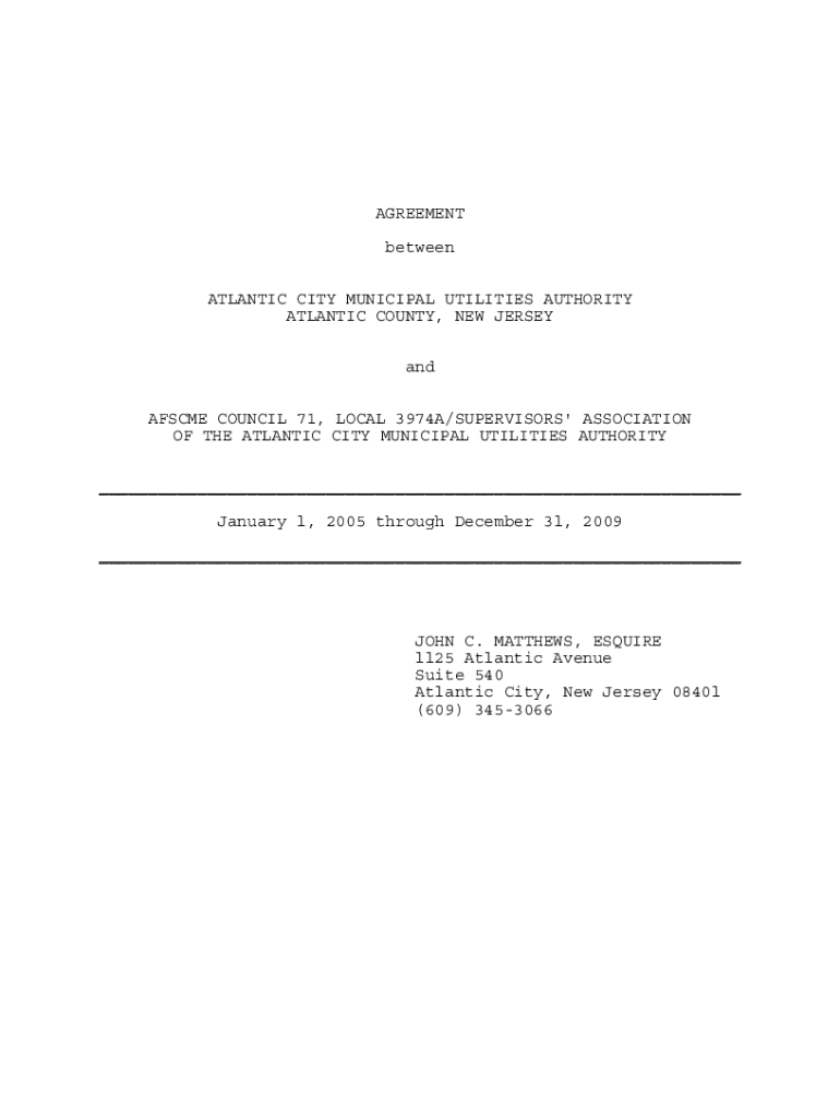 Get the free AGREEMENT between ATLANTIC CITY MUNICIPAL ...