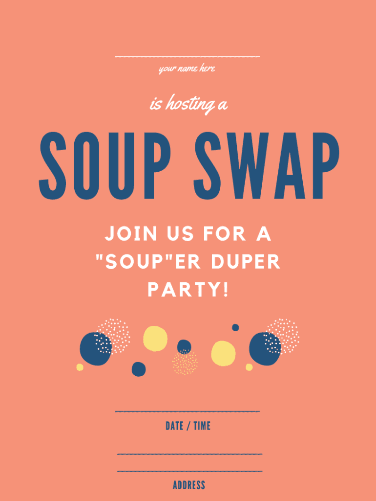 ___ your name Paris hosting soup SWAP JOIN US FOR A \”SOUP\”ER DUPER PARTY!___ DATE / TIME___ ___ ADDRESSES & TRICKS INSTRUCTIONS ARE FOR A PARTY OF SIX PEOPLE, INCLUDING YOURSELF.ADJUST ACCORDINGLY