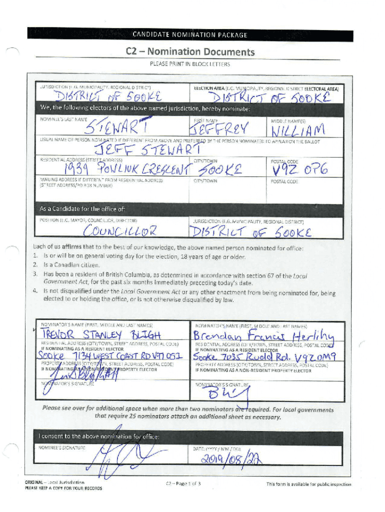 The nomination form typically requires personal identification details, the office sought, party affiliation (if any), and signatures from a certain number of eligible voters.