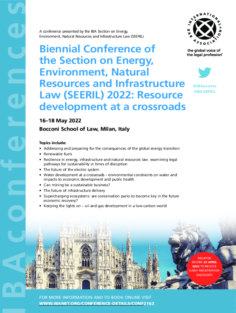 A conference presented by the IBA Section on Energy, Environment, Natural Resources and Infrastructure Law (SEER IL)Biennial Conference of the Section on Energy, Environment, Natural Resources and
