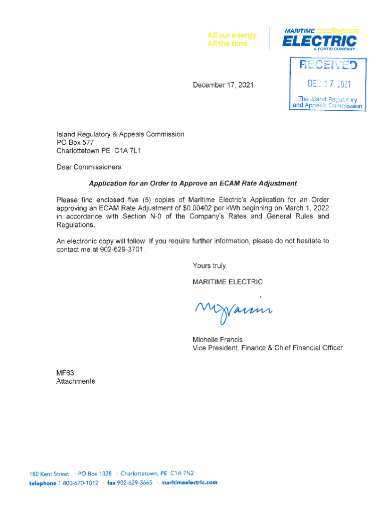CANADAPROVINCE OF PRINCE EDWARD ISLANDBEFORE THE ISLAND REGULATORY AND APPEALS COMMISSIONING THE MATTER of Section 10, 13(1) and 20 of the Electric Power Act (R.S.P.E.I. 1988, Cap. E4) and IN THE