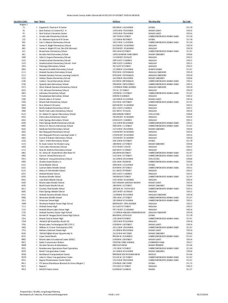 Get the free North Region Office - Miami-Dade County Public Schools