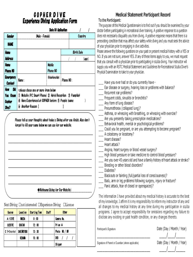 Get the free G O P H E R DIVE Experience Diving Application Form